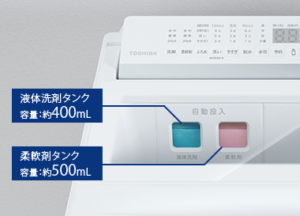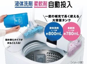 液体洗剤・柔軟剤の自動投入機能はついていませんが、