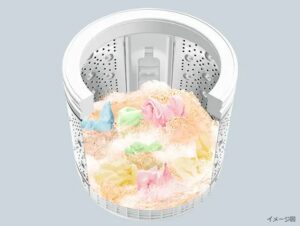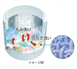 イルカの尾びれを応用したパルセーターで洗浄力も確保しています。