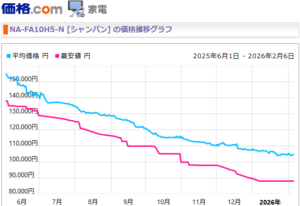 2025年8月の発売で、2月初め時点での参考価格は110,000円前後でした。