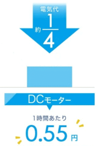 DCモーターを使っているものなら、もっと安くて1時間あたり0.5円台のものもあります。