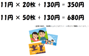 別途送料は130円かかりますが、それでも20枚で350円、50枚でも680円で送れます。