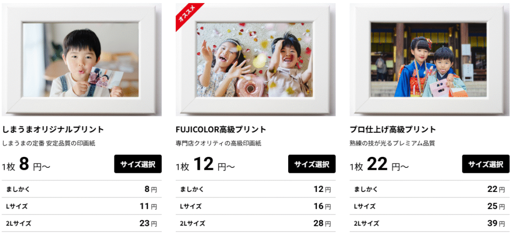 例えば、しまうまプリントなら、L版写真1枚11円~で