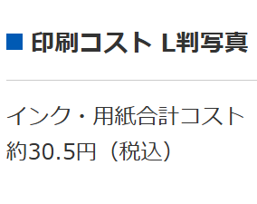 印刷スピードとコストは、L版写真1枚約16秒で約10.0円。