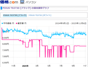 大容量インクを使えばTS3730の方が安くなります。