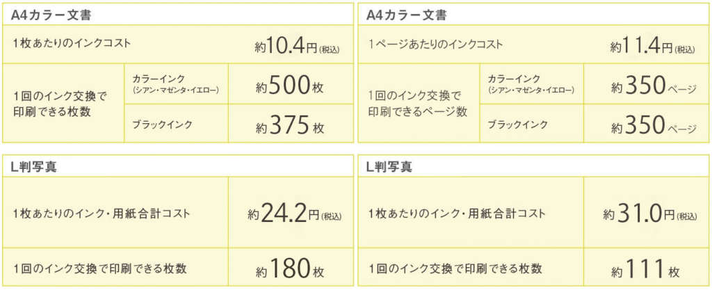 ただし、インクの型番が変わっていますのでインクコストは高くなっています。