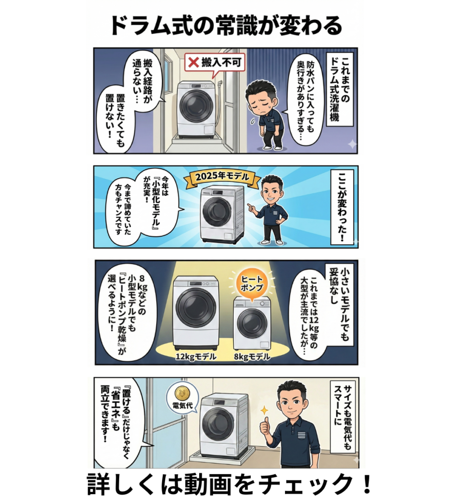 が、2025年に発売されたドラム式洗濯機は、小型化したモデルが増えて、