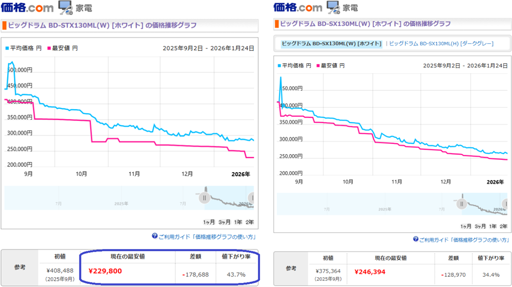 2026年1月末ごろ時点では下位モデルよりも値段が安くなっているところがあります。