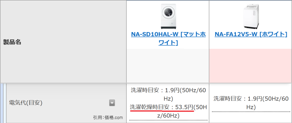 洗濯1回あたりの水道代は縦型より安くなります。