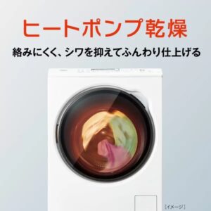 ヒートポンプ式乾燥、温水洗浄、液体洗剤・柔軟剤自動投入などがついています。