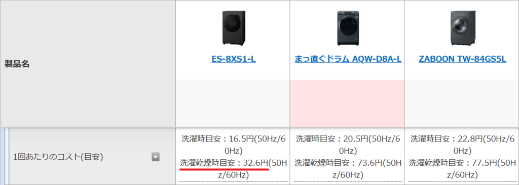 同じ洗濯容量8㎏のドラム式洗濯機の中で、かなり省エネ性能が高いモデルです。