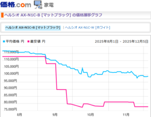 2025年8月の発売で、12月初めの参考価格は90,000円前後でした。