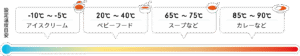 −10℃と20℃〜90℃まで5℃単位であたための仕上がり温度を調節できます。