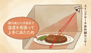 しかも、2つの赤外線センサーで1秒ごとに食材の温度を検知しますので、