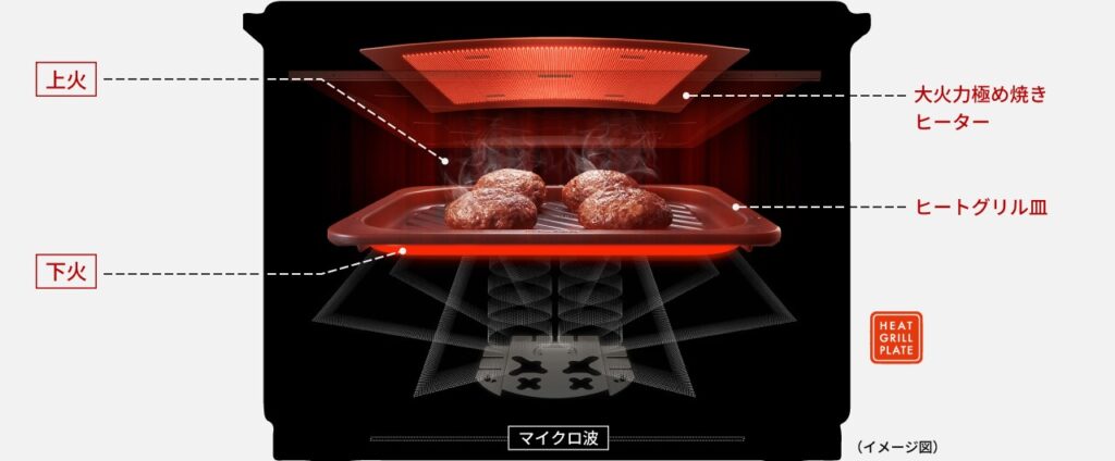 裏返し無しでハンバーグやトーストを両面こんがり焼くことができます。