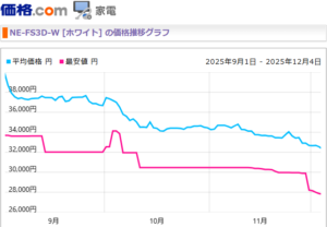 2025年9月の発売で、12月初めの参考価格は28,000円前後でした。