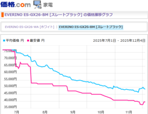 2025年7月の発売で、12月初めの参考価格は40,000円前後でした。