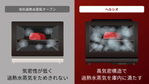 高気密構造で過熱水蒸気だけで調理ができますので、